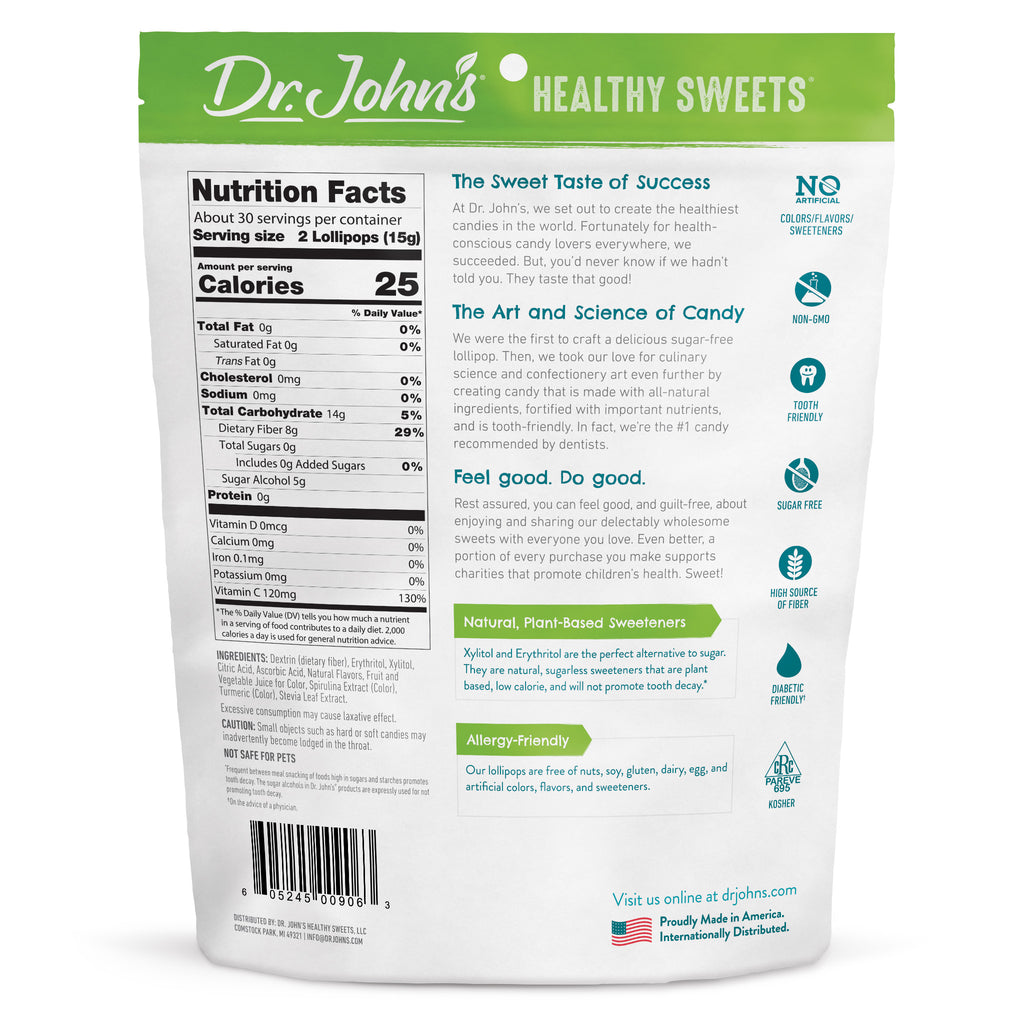 Dextrin (dietary fiber), Erythritol, Xylitol, Citric Acid, Ascorbic Acid, Natural Flavors, Fruit and Vegetable Juice for Color, Spirulina Extract (Color), Turmeric (Color), Stevia Leaf Extract.